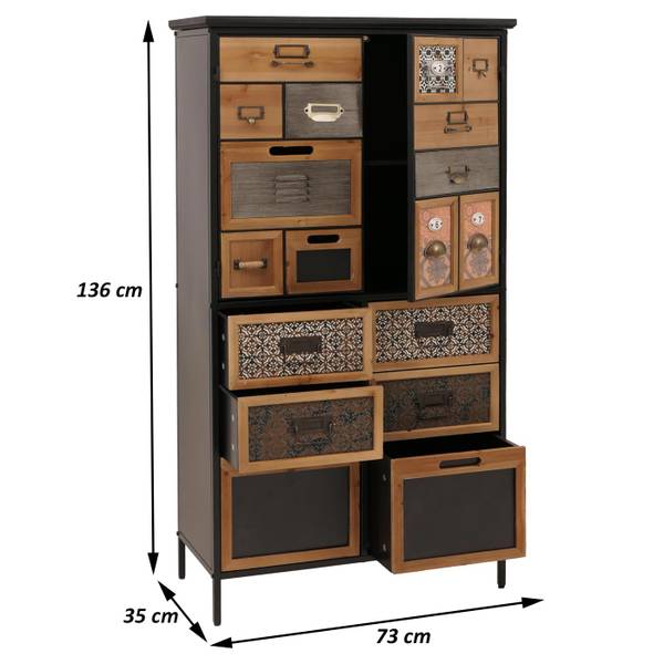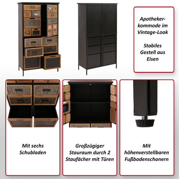 De kast combineert op harmonieuze wijze esthetiek en functionaliteit, zodat hij zowel als opbergwonder in de woonkamer, hal of slaapkamer als decoratief hoogtepunt kan worden gebruikt. De royale ruimte in de lades en opbergvakken zorgt voor orde en overzicht en stelt u in staat uw persoonlijke spullen stijlvol en praktisch op te bergen. Of u hem nu als op zichzelf staand meubelstuk gebruikt of in combinatie met andere meubels in vintage-stijl, de apothekerskast O80 zorgt voor een gezellige en tegelijkertijd karaktervolle inrichting.