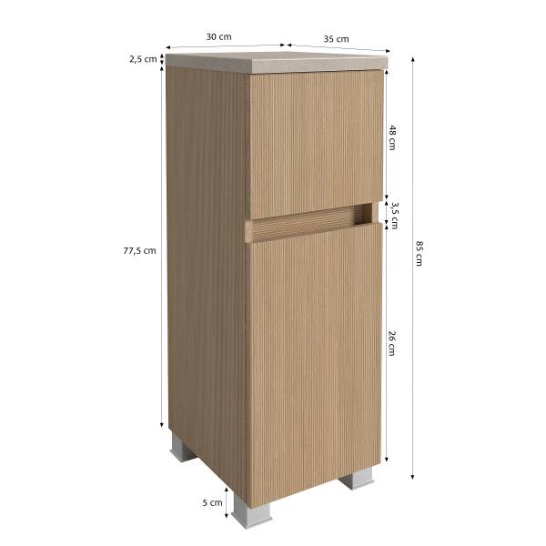 - Binnenmaat lades: BxHxD: 71 x 22 x 39 cm ; BxHxD: 21 x 22 x 29 cm