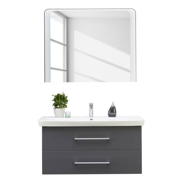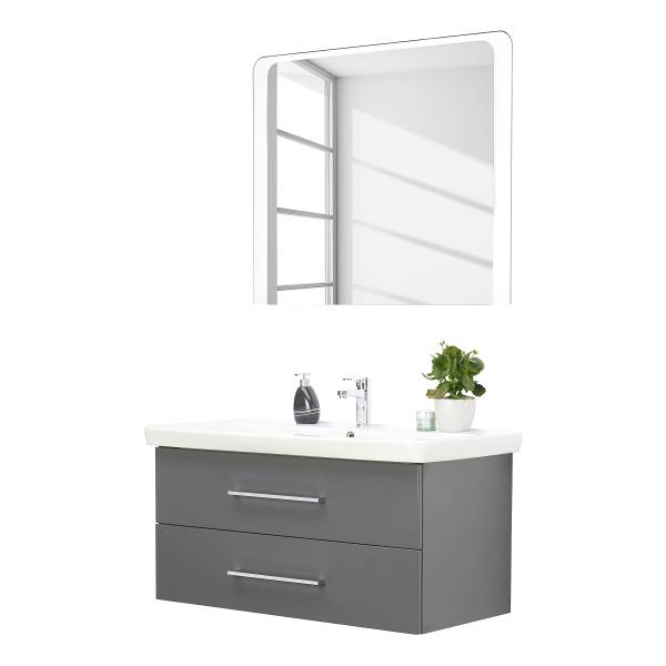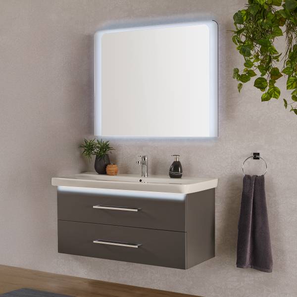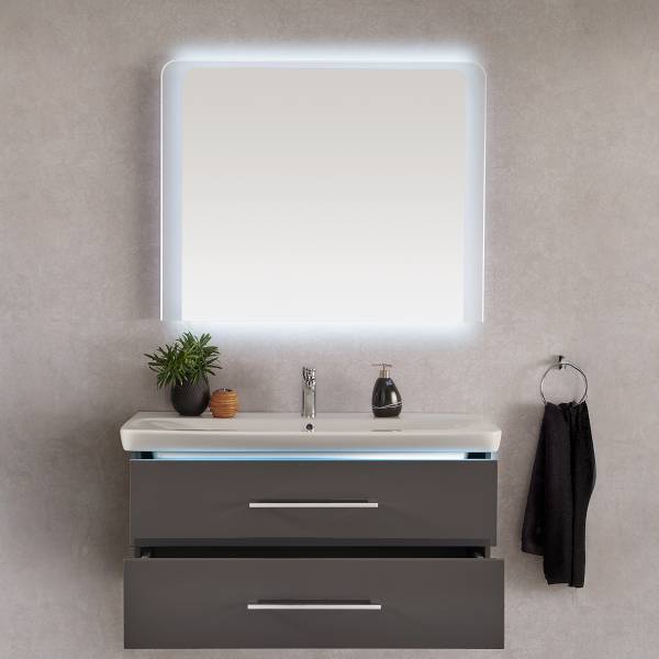 - Levering: Badkamerset bestaande uit 1 spiegelelement & 1 wastafel incl. wasbak van keramiek & Conturalight-verlichting