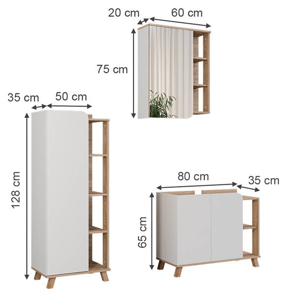 Wastafelonderbouw: 80 x 65 x 35 cm (BxHxD)