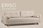 Een driezitsbank of hoekbank uit de ERISO collectie heeft een slaapfunctie - ideaal voor overnachtende gasten. Het mechanisme waarmee de bank snel kan worden geopend is het DL-systeem. Een binnenbak biedt de nodige opbergruimte voor beddengoed. De hoogwaardige stoffen bekleding staat bekend om zijn duurzaamheid en weerstand tegen beschadigingen. Het comfort wordt gegarandeerd door een middelzware zitting van bonellveren en polyurethaanschuim, die ook te vinden is in de fauteuil uit deze collectie. Hij is ideaal voor een minimalistische woonkamer. De houten poten en hoogwaardige materialen geven het meubel elegantie en benadrukken de Scandinavische stijl. De constructie is stevig, gemaakt van 3,2 mm dik vezelplaat van de hoogste kwaliteit, en de meubels zijn duurzaam en gaan lang mee. De prachtige kleuren en Scandinavische stijl van de bekleding passen perfect bij elk interieur met zijn unieke karakter, dat niet alleen door de bewoners van het huis, maar ook door gasten gewaardeerd zal worden.