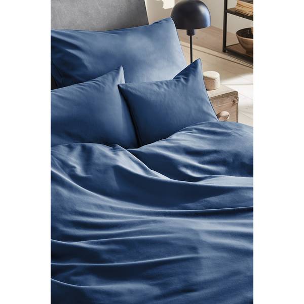 katoen - jeansblauw - 155 x 220 cm + kussen 80 x 80 cm