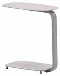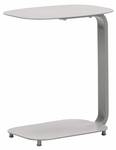 De bijzettafel heeft een frame en tafelblad van aluminium.