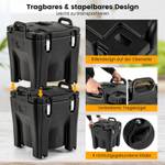 Goede afdichting en accessoires: de geïntegreerde O-ringafdichting en de bovenste ontluchtingskap maken een betere handhaving van de binnentemperatuur mogelijk. De roestvrijstalen sluitingen houden het deksel stevig vast. Het pakket bevat bovendien extra stickers en 2 remmen voor een comfortabeler gebruik.