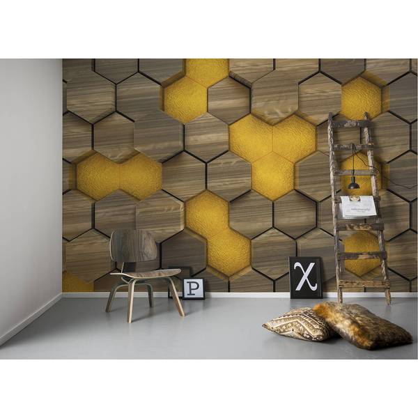 - Breng lijm aan op de te behangen muur & breng de precies passende stroken aan op de muur