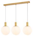 Ontwerpconcept: Deze woonkamerlamp heeft een minimalistisch en elegant design dat moderne gouden accenten combineert met de zachte uitstraling van witte glazen bollen. De strakke lijnen van het plafondelement voegen een extra visuele dimensie toe aan de kamer. Tegelijkertijd zorgen de witte glazen bollen voor een warme en gelijkmatige verlichting. Deze combinatie creëert een stijlvolle en gezellige sfeer.