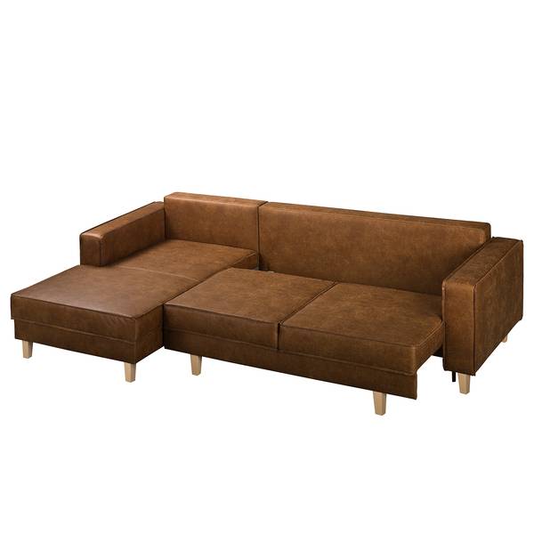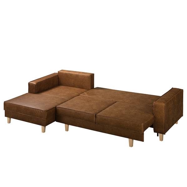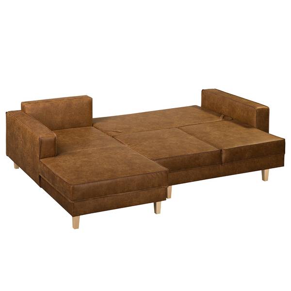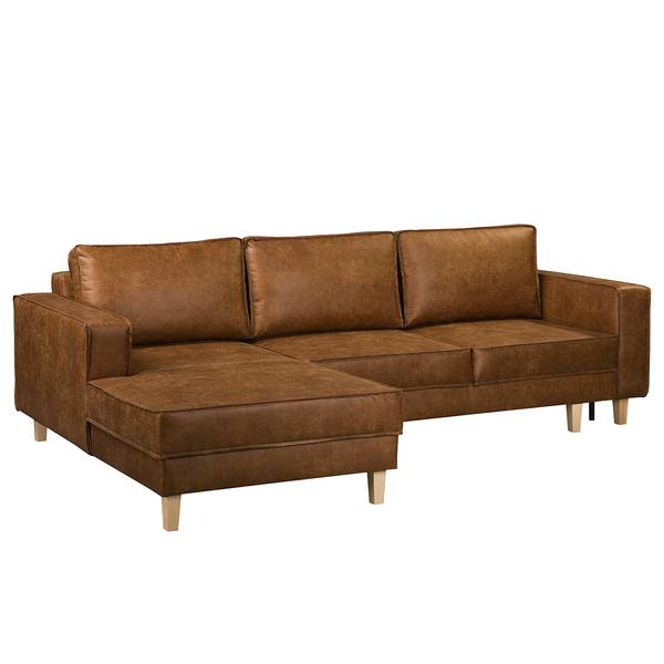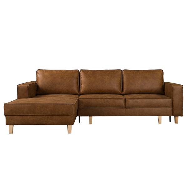 mixweefsel Xia: cognac - chaise longue vooraanzicht links