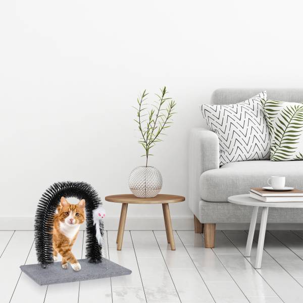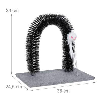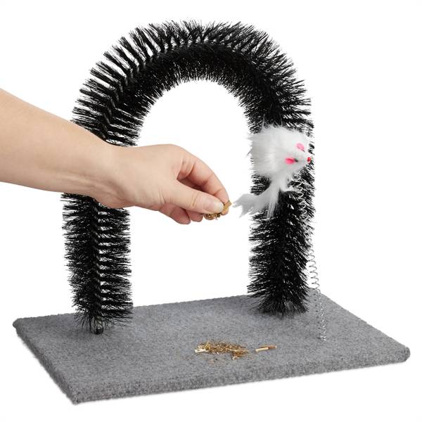 Met de ontharingsborstel maak je eindelijk een einde aan de vele kattenharen verdeeld in de woning en doet op hetzelfde moment iets goeds voor de kat. Terwijl de poes door de kattenboog kruipt, worden knopen en uitgestorven haren verwijdert en zijn rug zachtjes gemasseerd. De haren blijven in de borstel hangen, welke vervolgens eenvoudig verwijderd kunnen worden. Dankzij de muis aan de flexibele veer word de kat altijd speels naar de verzorgingsborstel gelokt.