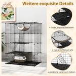 Onze grote kattenkooi met 4 niveaus is een veelzijdige en ruime oplossing voor de behoeften van je huisdier. Het bovenste niveau biedt een gezellige rustruimte, terwijl de twee middelste niveaus perfect zijn om mee te spelen en het onderste niveau ruimte biedt voor voer- en waterbakken. De kooi is gemaakt van betrouwbaar PP en gepoedercoate metalen buizen en is geschikt voor langdurig gebruik. Hij wordt bovendien geleverd met veilige kantelbeveiligingen, waarmee je hem aan de muur kunt bevestigen om stabiliteit te garanderen en ongelukken te voorkomen. Deze kooi is niet alleen ideaal voor katten, maar ook voor andere kleine dieren zoals fretten, konijnen, honden en eekhoorns.