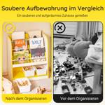 Met veel speelgoed en talloze boeken is het vaak niet altijd even makkelijk om de juiste opbergruimte te vinden. Onze kinderplank helpt kinderen hun schatten te ordenen. Deze boekenkast is ideaal voor kinderen om zelfstandig hun speelgoed uit te pakken en op te bergen. De kinderplank met 4 vakken biedt voldoende ruimte voor kinderboeken. Kinderen kunnen bouwstenen, auto's, enz. opbergen in het grote vak eronder om hun kamer netjes te houden. De plank is gemaakt van hoogwaardig MDF (E1) hout; het is robuust, duurzaam en gemakkelijk te onderhouden. Je hebt alleen een vochtige doek nodig om hem schoon te maken. De schuine houten poten zijn robuust en stabiel, wat de veiligheid van je kind garandeert. Veelzijdige combinaties! Meer dan alleen een kinderplank! Hij kan ook gebruikt worden als kantoorplank, opbergplank, boekenkast, enz.