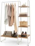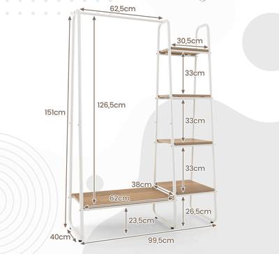 2-in-1 design met veel ruimte: met 4 opbergvakken biedt de kledingstandaard veel ruimte voor je kleding, schoenen, tassen en houdt deze op orde. En een ingebouwde kledingstang met voldoende hoogte is praktisch voor het ophangen van jassen of kleding.