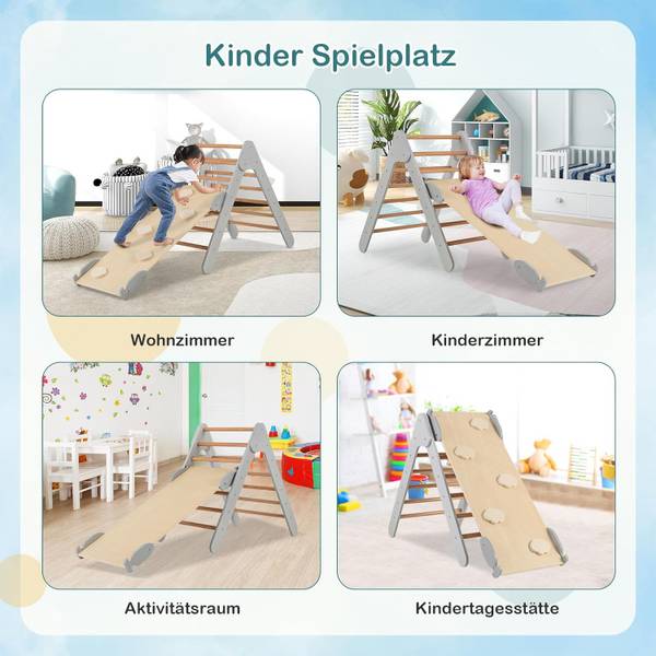 Perfect kindercadeau: met de gedetailleerde handleiding (mogelijk niet beschikbaar in het Nederlands) en het meegeleverde materiaal kunnen ouders snel en eenvoudig een indoor klimrek voor kinderen bouwen. Deze klimdriehoek van hout is een leuk cadeau voor kinderen, dat helpt om het evenwicht te bevorderen en door klimmen en glijden sportieve vaardigheden op te bouwen.