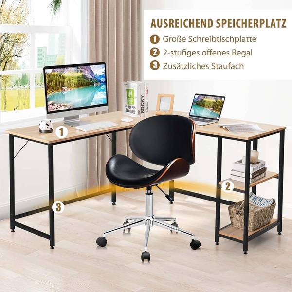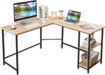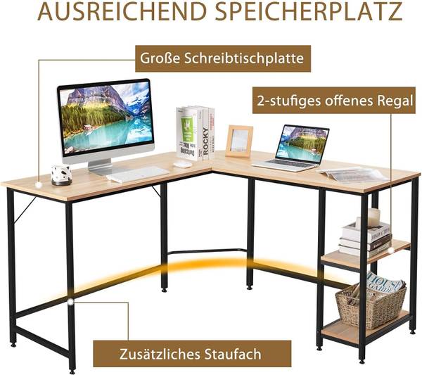 Hij bestaat uit robuust metaal en hoogwaardige houtmaterialen, waardoor stabiliteit en duurzaamheid worden gewaarborgd. Door de L-vorm wordt de beschikbare ruimte optimaal benut en door het eenvoudige ontwerp kan hij perfect in je eigen huis of kantoor worden geïntegreerd. Hij is geschikt voor leren, schrijven en gamen, en daarom is het een ideale keuze als je op zoek bent naar een multifunctioneel bureau.