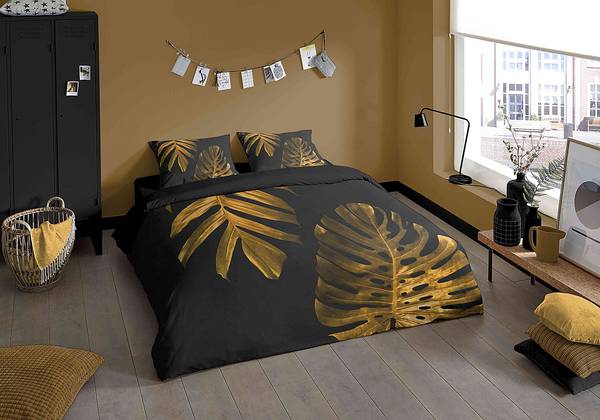 microvezel - goudkleurig / zwart - 140 x 200/220 cm + kussen 70 x 60 cm