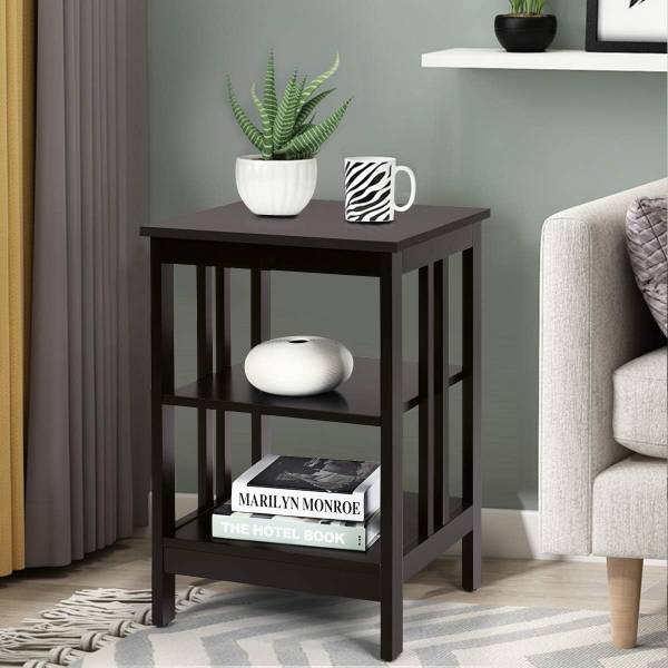 - Veel opbergruimte: met zijn drie etages is deze tafel zeer praktisch en maakt het je eenvoudig om je dagelijkse gebruiksvoorwerpen gesorteerd op te bergen. Je kunt ze op het bovenste niveau of op de twee onderste plaatsen, afhankelijk van je behoeften en voorkeuren.