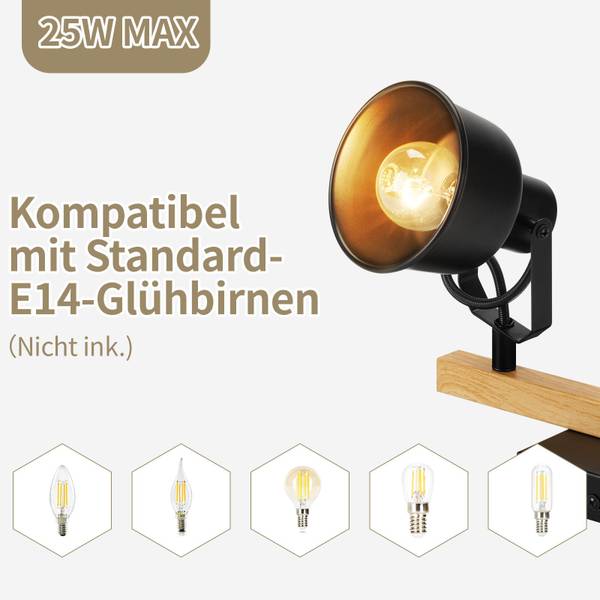 Universele compatibiliteit: Deze plafondlamp is geschikt voor alle E14-fittingen en kan flexibel worden gecombineerd met verschillende lichtbronnen om de perfecte verlichting te creëren voor elke gelegenheid (lichtbron niet inbegrepen).