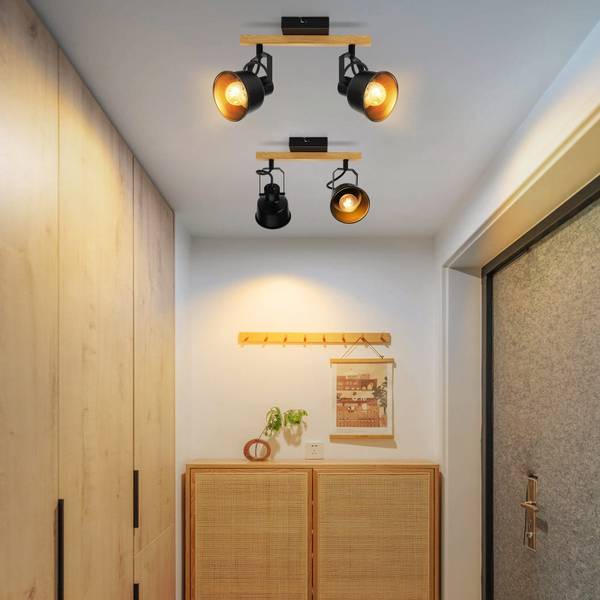 Industrieel ontwerp: Deze elegante plafondspot is ontworpen in klassiek zwart-wit + houtnerf, met een moderne en tijdloze uitstraling, met een subtiele uitstraling die perfect past bij elke interieurstijl.