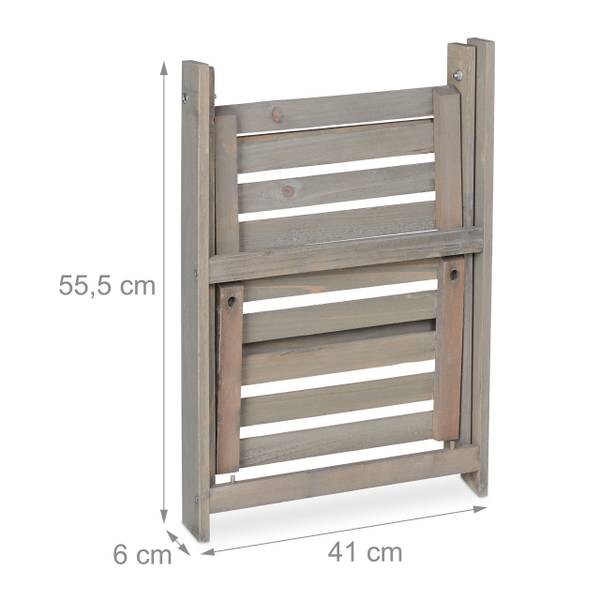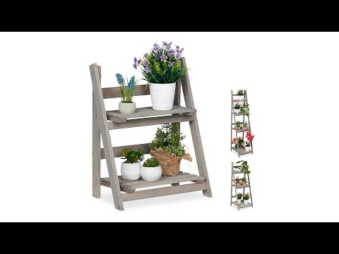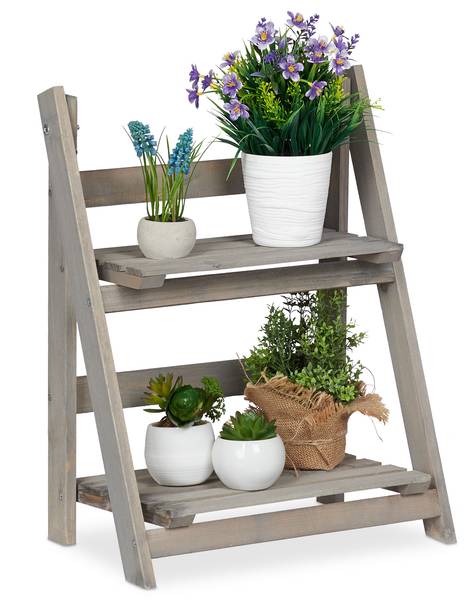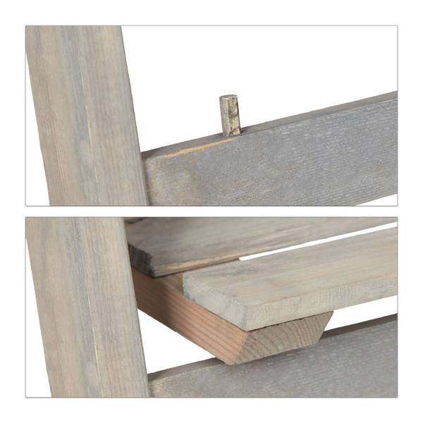 Het houten rek zorgt eindelijk voor de ruimte die je nodig hebt om je geliefde bloemen decoratief te presenteren. Bonte bloemen, kruiden, bloempotten en vazen kunnen op de planken van verschillende groottes op mooie wijze worden gepresenteerd. Creëer je persoonlijke, kleine plantenhoek in de woonkamer, gang of tuin of zet de plantentrap in een beschutte hoek op het balkon of terras neer. Het bloemenrek is helemaal van hout gemaakt en past door de onopvallende grijze kleur goed bij iedere inrichting. Als hij niet gebruikt wordt, klap je de plantenladder in en berg je hem ruimtebesparend op.