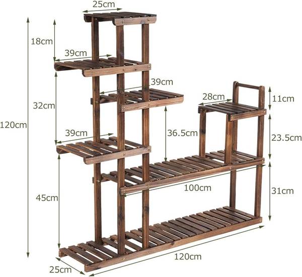 - Natuurlijke houtstructuur: het bloemenrek is gemaakt van massief dennenhout, wat hem een hoog draagvermogen geeft. Het oppervlak van deze plantenstandaard beschikt over een natuurlijke en opvallende structuur en zorgt zo voor een stijlvol decoratief element