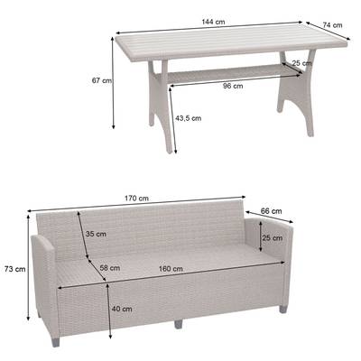 De zachte zit- en rugkussens garanderen een hoog zitcomfort, zodat je ook langere tijd kunt ontspannen en van de zon kunt genieten. De tafel heeft een extra opbergruimte onder het tafelblad, zodat je veel opbergruimte hebt voor alledaagse spullen en meer stabiliteit hebt. Deze set kan ook worden aangepast aan elke gelegenheid en de beschikbare ruimte. Met deze tuinmeubelset creëer je een nieuwe favoriete plek om quality time door te brengen met je geliefden en te genieten van je tijd buiten.