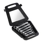 Met deze ringratelsleutelset heb je altijd de juiste ringsleutel snel te pakken. De 6-delige set heeft de maten van 6 tot 15 mm, 17 mm en 19 mm. De ratel kan versteld worden om gemakkelijk rechts- of linksom te draaien. De knik aan de kant van de ratel zorgt voor een eenvoudiger en comfortabeler gebruik. In de compacte opbergdoos zijn de ratelsleutels overzichtelijk en toegankelijk opgeborgen.