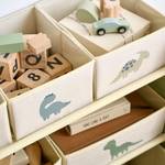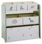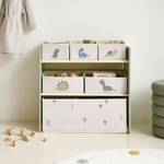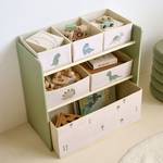 Dankzij het slimme ontwerp helpt deze kast om speelgoed, boekjes of blokken netjes bij elkaar te houden, terwijl het compacte formaat weinig ruimte inneemt en in diverse kamers past. De «Dino» speelgoedkast is speciaal ontworpen op peuterhoogte, zodat kinderen van 2 tot 5 jaar zelfstandig hun spullen kunnen pakken en opbergen. Zo draagt deze groene opbergkast met bakken bij aan een overzichtelijke en uitnodigende speelomgeving.