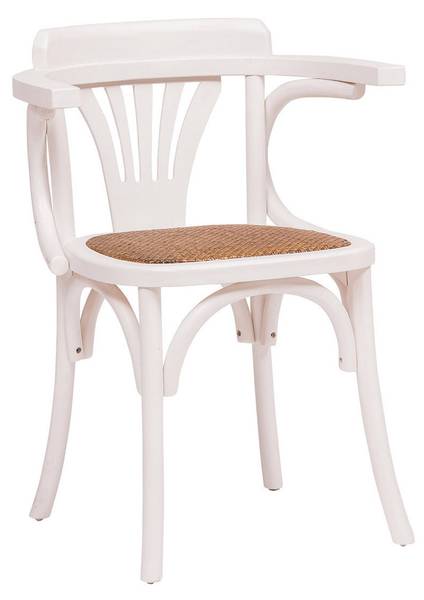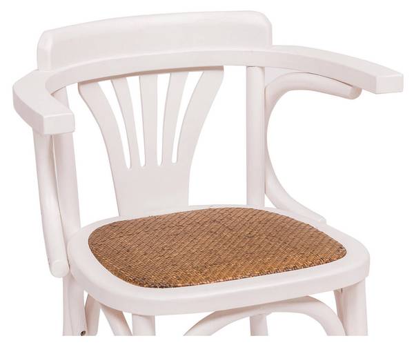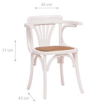 TIJDLOZE ELEGANTIE – Haal de authentieke charme van een klassieke Weense koffiehuisstoel in huis met dit prachtige Thonet-model. De elegante, gebogen vormen en de verfijnde antiek witte afwerking geven deze stoel een landelijke, warme uitstraling die karakter toevoegt aan elk interieur, van brocante tot modern. Een designicoon dat nooit uit de mode raakt en een vleugje verfijning brengt in uw woning.