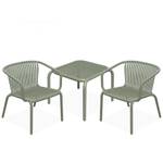Alle items in de collectie zijn gemaakt van hoogwaardig kunststof - een mengsel van polypropyleen met toegevoegde glasvezel. Dit moderne materiaal garandeert duurzaamheid en stabiliteit, maar blijft licht en comfortabel voor dagelijks gebruik. Het gladde, matte oppervlak van het frame is gemakkelijk schoon te maken en weerbestendig, en het geraffineerde ontwerp van het meubilair voorkomt effectief de ophoping van water na regen. Geïntegreerde 3 mm dikke PVC poten beschermen de vloer en zorgen voor voldoende stabiliteit, zelfs bij veelvuldig gebruik.