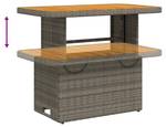 - Verstelbaar tafelblad: het tafelblad kan worden opgetild om de tafel hoger te maken, waardoor de tuintafel verandert van salontafel in eettafel. Hij is perfect om gasten te ontvangen of buiten te eten.