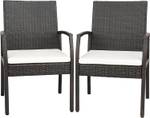 Hoogwaardig PE-rotan: deze 2-delige stoelset beschikt over handgeweven bruin PE-rotan, dat er niet alleen mooi uitziet, maar ook bestand is tegen vervagen en duurzaamheid. De rotanstoelen zijn daarom ideaal voor langdurig gebruik buitenshuis. Opmerking: vermijd blootstelling aan regen voor een langere levensduur.