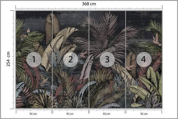 - Geen overlappingen: het patroon wordt "rand-op-rand" aangepast (zonder overlappingen), wat een perfecte en vrijwel onzichtbare aansluiting van de afzonderlijke banen op de muur mogelijk maakt.