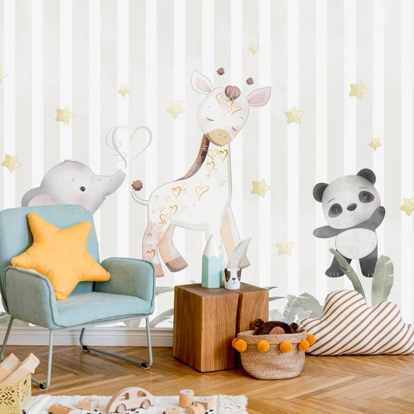 Vlies-Fotobehang DIEREN Bladeren Strepen
