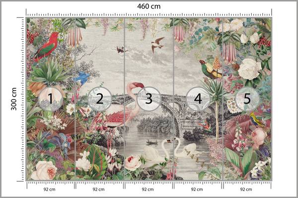 Vlies-Fotobehang Vogels BLOEMEN Blad