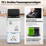 Wij presenteren de innovatieve afvalcontainer met contactloze bewegingssensor, die de afvalverwijdering stijlvol en comfortabel vereenvoudigt. Deze ultramoderne vuilnisemmer van 72 liter opent automatisch in 0,3 seconden. Hij beschikt over een 46,5 liter bovenvak en een afneembare 3,5 liter keukenafvalbak voor een efficiënte afvalverwijdering. Het doordachte dubbele uittreksysteem biedt twee kleine uitneembare vuilnisemmers met een inhoud van 11 liter en maakt zo een naadloze recycling mogelijk. Deze vuilnisemmer bestaat uit een duurzame 3-laagse roestvrijstalen constructie, is bestand tegen vingerafdrukken en biedt een buitengewone duurzaamheid.