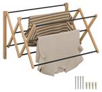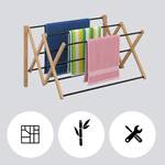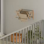 Dit inklapbare en uitschuifbare wanddroogrek is ideaal om je kleding te drogen. De 8 stangen op verschillende hoogtes bieden voldoende ruimte voor shirts, broeken en ander wasgoed. Het rek is gemaakt van bamboe en metaal en wordt aan de muur bevestigd waardoor het weinig ruimte inneemt. Gebruik je hem niet, dan klap je hem eenvoudig in. Perfect dus voor kleinere badkamers. Met het meegeleverde bevestigingsmateriaal hang je het wasrek in een handomdraai op.
